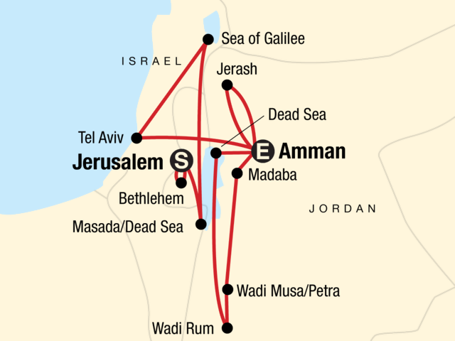 Wander the quarters of Jerusalem's Old City, Taste your way through a local market, Learn about Israeli, Palestinian and Jordanian cooking, Ride through the Wadi Rum desert on a 4x4, Explore the awe-inspiring ancient city of Petra