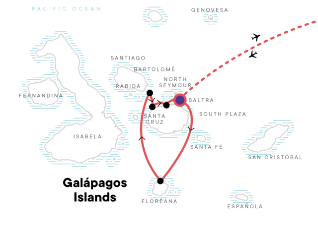 Flights to either of the airports in the Galapagos leave early in the morning on Day 2 and get you into the islands in the early afternoon. Flights back to the mainland depart between 10:00am and 1:30pm arriving in the early evening.